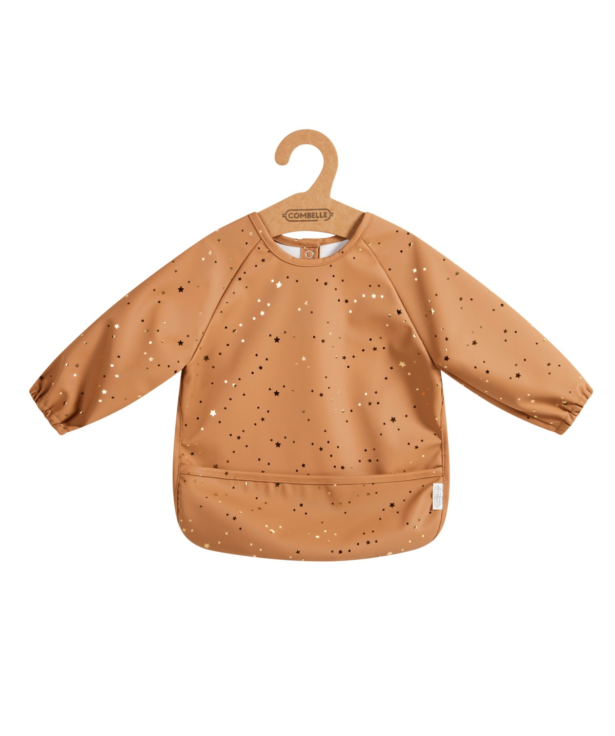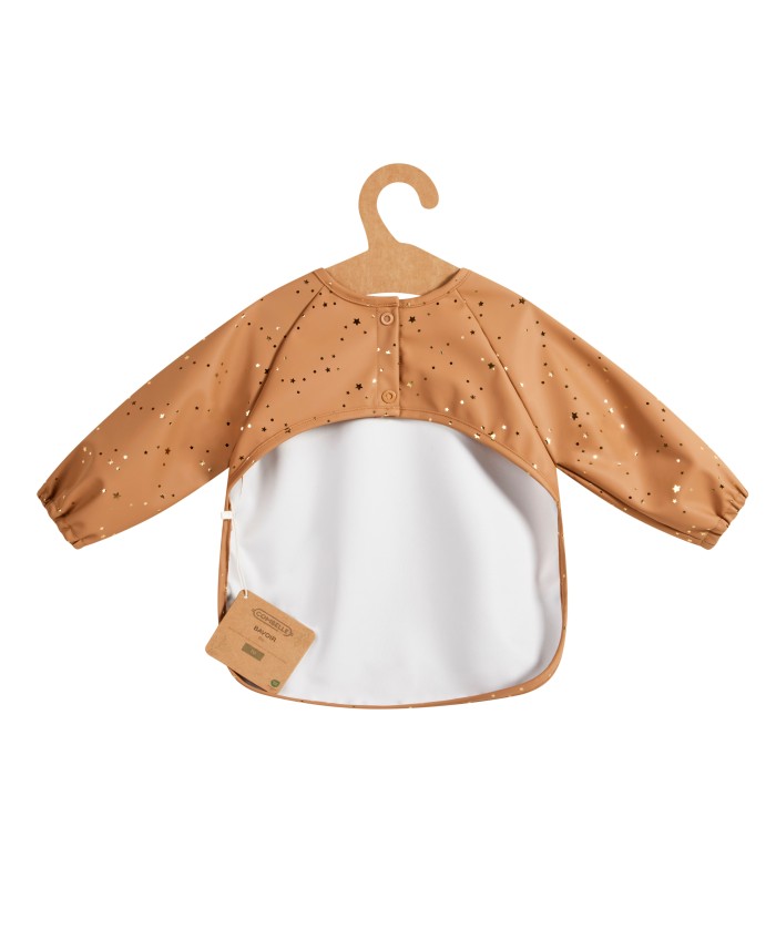 Découvrez ce bavoir tablier à manches longues, pour éviter à bébé de se tâcher ! Nous avons également fait le choix d'ajouter un ramasse miettes sur le bas du bavoir, il est idéal lorsque votre enfant apprend à manger seul. Facile à nettoyer.