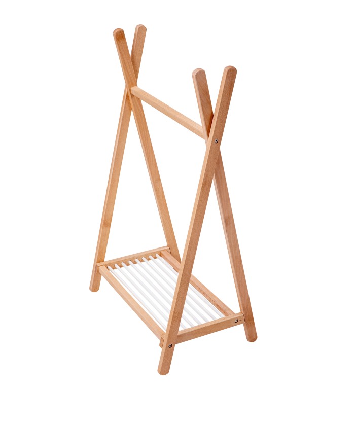 CARACTÉRISTIQUES : Portant à vêtements pour enfant en hêtre massif vernis