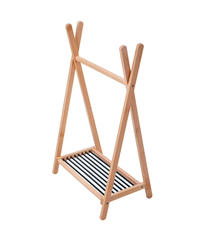 CARACTÉRISTIQUES : Portant à vêtements pour enfant en hêtre massif vernis
