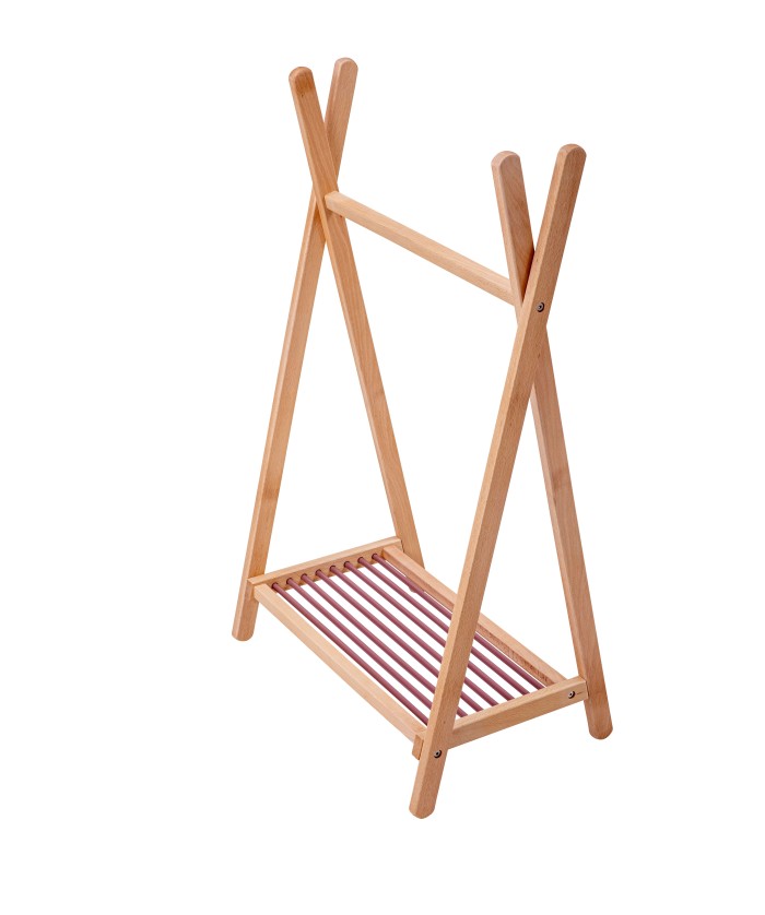 CARACTÉRISTIQUES : Portant à vêtements pour enfant en hêtre massif vernis