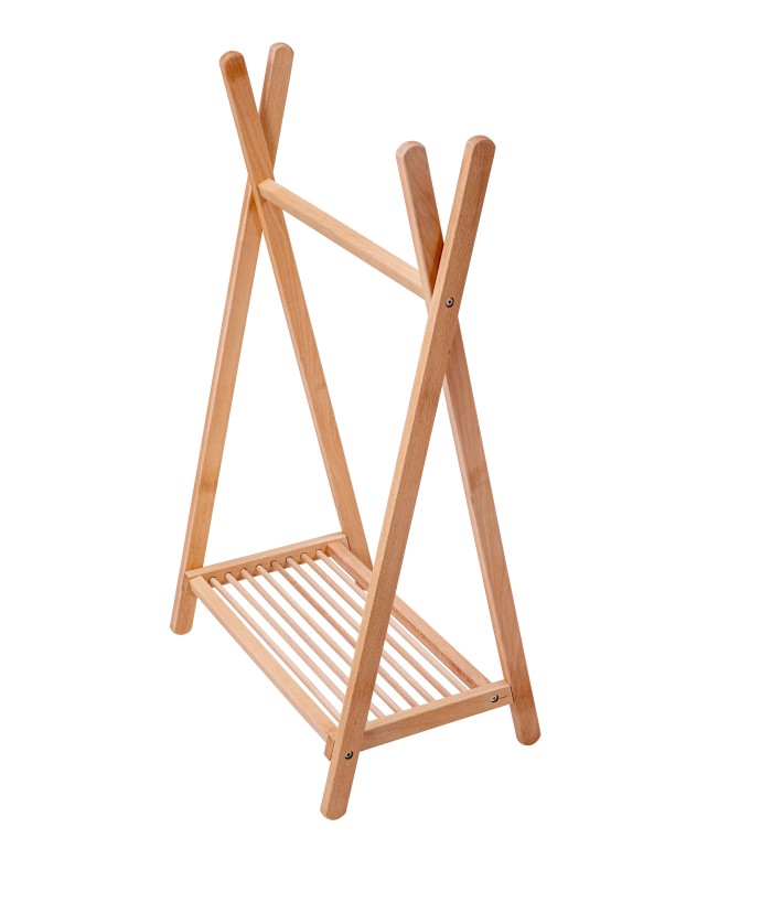 CARACTÉRISTIQUES : Portant à vêtements pour enfant en hêtre massif vernis