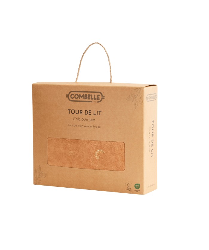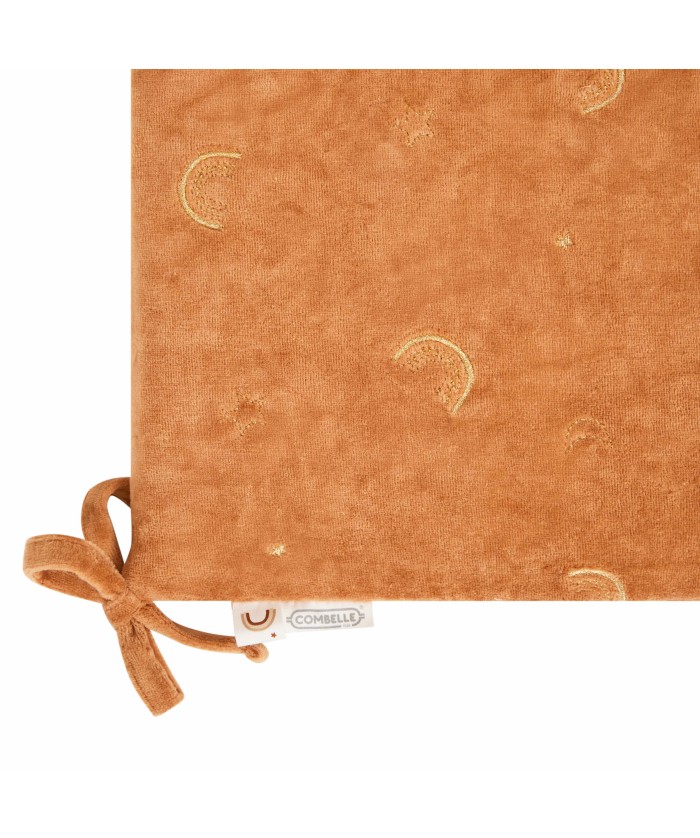 Tour de lit camel en velours brodé avec des motifs Arc-en-ciel et étoiles, pour apporter de la douceur aux nuits de bébé.