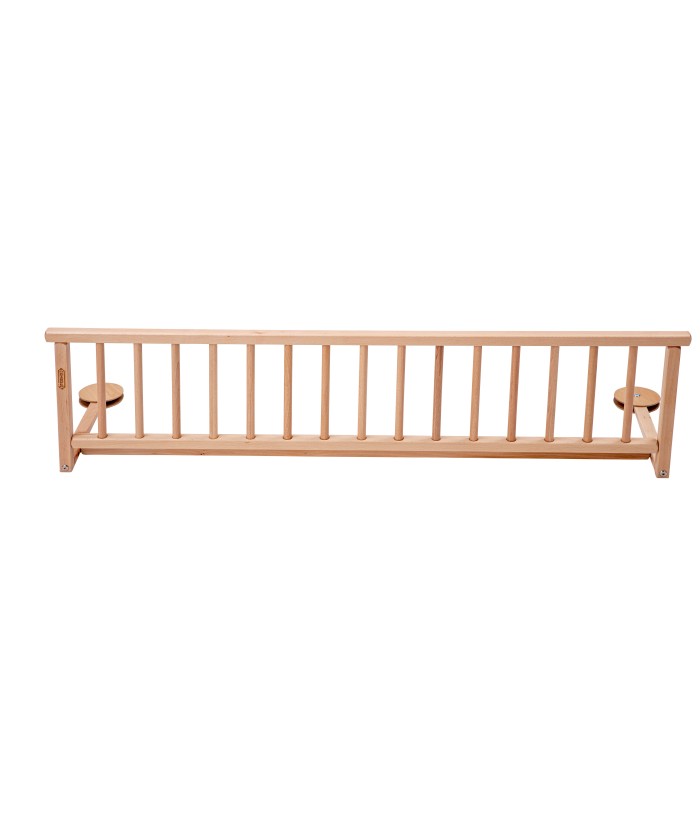 Barrière de lit en hêtre massif. Dimensions Longueur 127 cm, hauteur totale 35 cm.