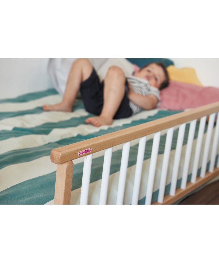 La barrière de lit pliante de Combelle permet de maintenir votre enfant en sécurité durant ses nuits mais aussi de rassurer maman qui n’a plus à s’inquiéter. Cette barrière de lit mesure 127 cm de longueur et 34 cm de largeur, sa hauteur s’élève à 35 cm. Celle-ci vous permet , dès ses 3 ans, de pouvoir le faire dormir sur un matelas junior sans aucun risque. Elle est disponible dans 8 coloris différents afin de satisfaire vos envies. La barrière de lit pliante de Combelle est fabriquée en France et en hêtre massif. Les parties de la barrière conçues en hêtre massif sont garanties 10 ans, les autres sont garanties 2 ans. La barrière de lit s’adapte à tous les lits et sommiers, même les sommiers à lattes.