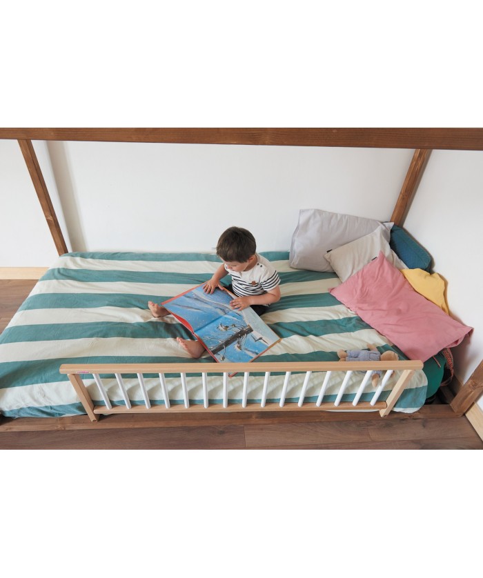La barrière de lit pliante de Combelle permet de maintenir votre enfant en sécurité durant ses nuits mais aussi de rassurer maman qui n’a plus à s’inquiéter. Cette barrière de lit mesure 127 cm de longueur et 34 cm de largeur, sa hauteur s’élève à 35 cm. Celle-ci vous permet , dès ses 3 ans, de pouvoir le faire dormir sur un matelas junior sans aucun risque. Elle est disponible dans 8 coloris différents afin de satisfaire vos envies. La barrière de lit pliante de Combelle est fabriquée en France et en hêtre massif. Les parties de la barrière conçues en hêtre massif sont garanties 10 ans, les autres sont garanties 2 ans. La barrière de lit s’adapte à tous les lits et sommiers, même les sommiers à lattes.