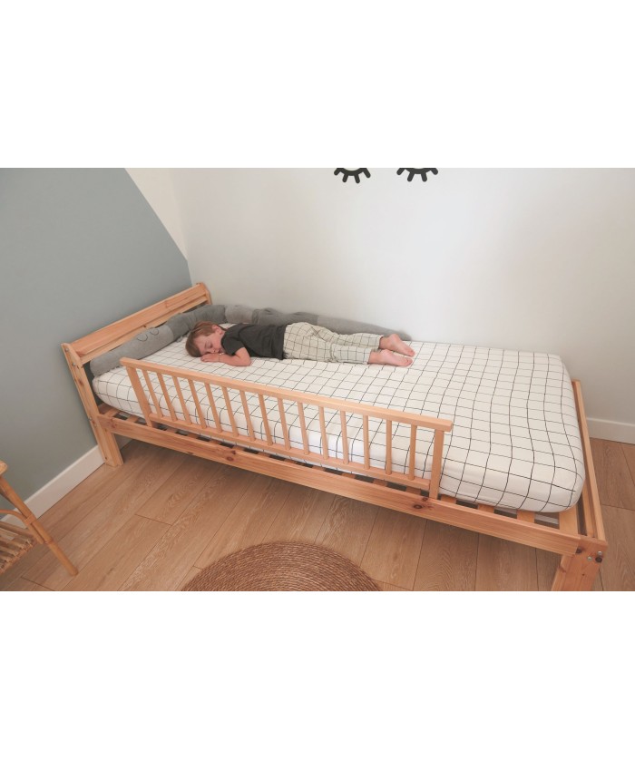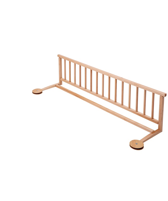 Barrière de lit en hêtre massif. Dimensions Longueur 127 cm, hauteur totale 35 cm.