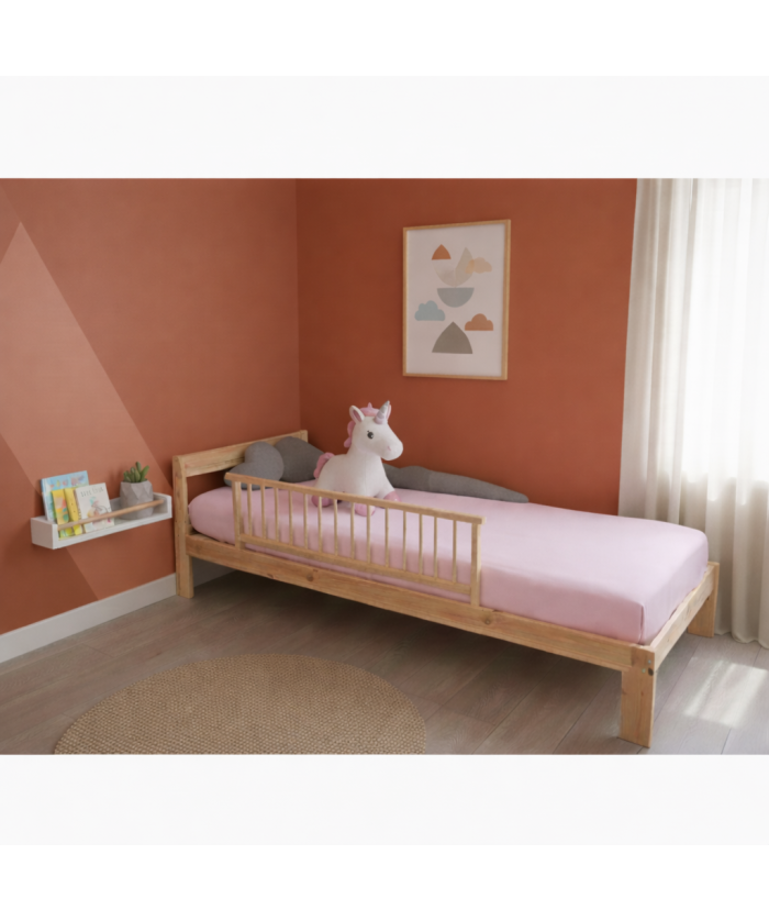 Barrière de lit en hêtre massif. Dimensions Longueur 127 cm, hauteur totale 35 cm.