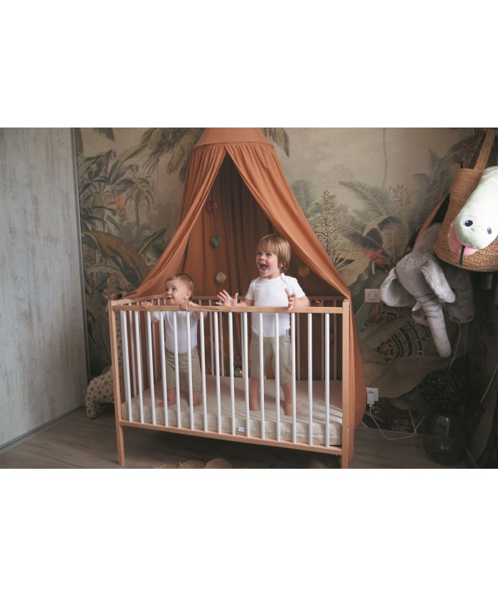 Grâce à son plancher réglable sur 2 hauteurs différentes Bébé peut utiliser le lit Rémi jusqu’à l’âge de 4 ans. Il s’adapte à la croissance de bébé et lui permet de rester dans son lit en toute sécurité.