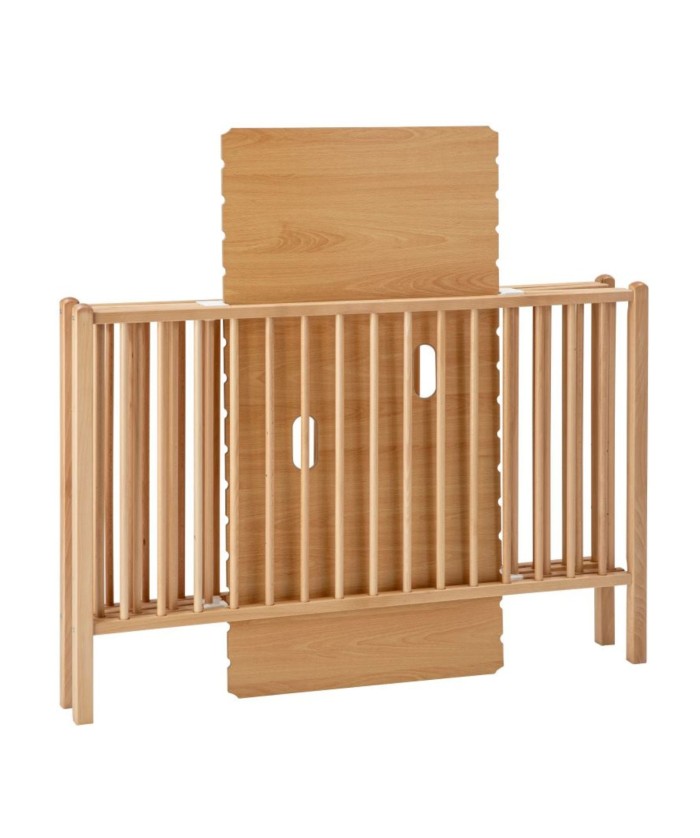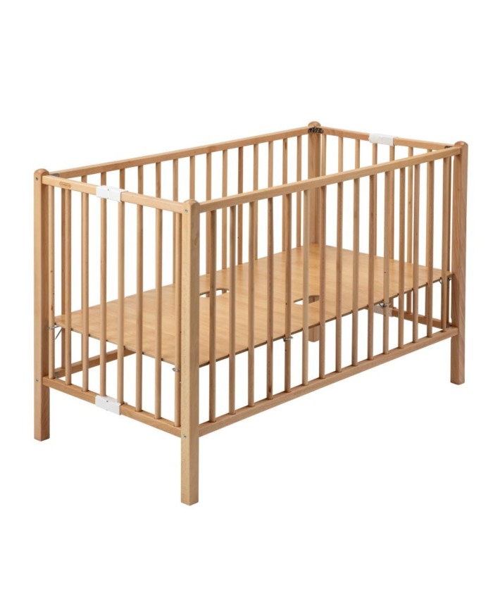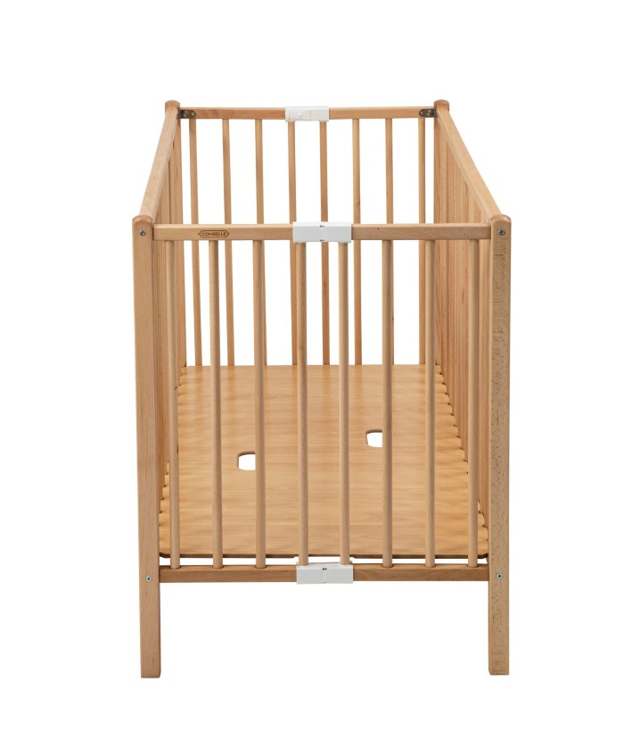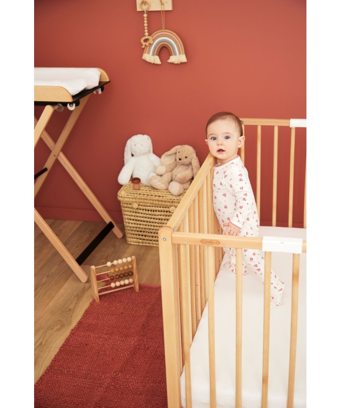 Idéal pour les petits espaces, le lit pliant Roméo de Combelle est réglable sur 3 positions pour s'adapter à l'évolution de bébé. Il accompagnera bébé jusqu’à l’âge de 4 ans. Le lit pour bébé Roméo est disponible en une seule et unique taille 60 x 120 cm. Cependant, le lit est disponible dans de nombreux coloris différents afin de s’accorder avec la décoration de la chambre de bébé. Fabriqué artisanalement en France et conçu en bois d’hêtre massif, ce lit se rangera facilement lors de vos déplacements. Les parties du lit en hêtre massif sont garanties 30 ans tandis que les autres parties sont garanties 2 ans. Il possède un sommier à lattes galbées réglable sur 3 positions de hauteur différentes afin de s’adapter à la croissance de bébé. Cela permet aussi d’éviter que papa et maman se fassent mal au dos lorsqu’ils déposent leur bébé au fond de son lit. Le lit peut aussi être associé à des roulettes, en option, afin de pouvoir être déplacé partout dans la maison.