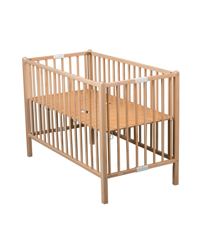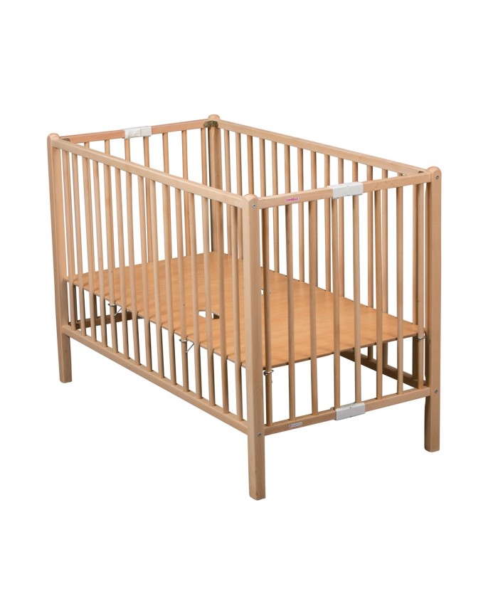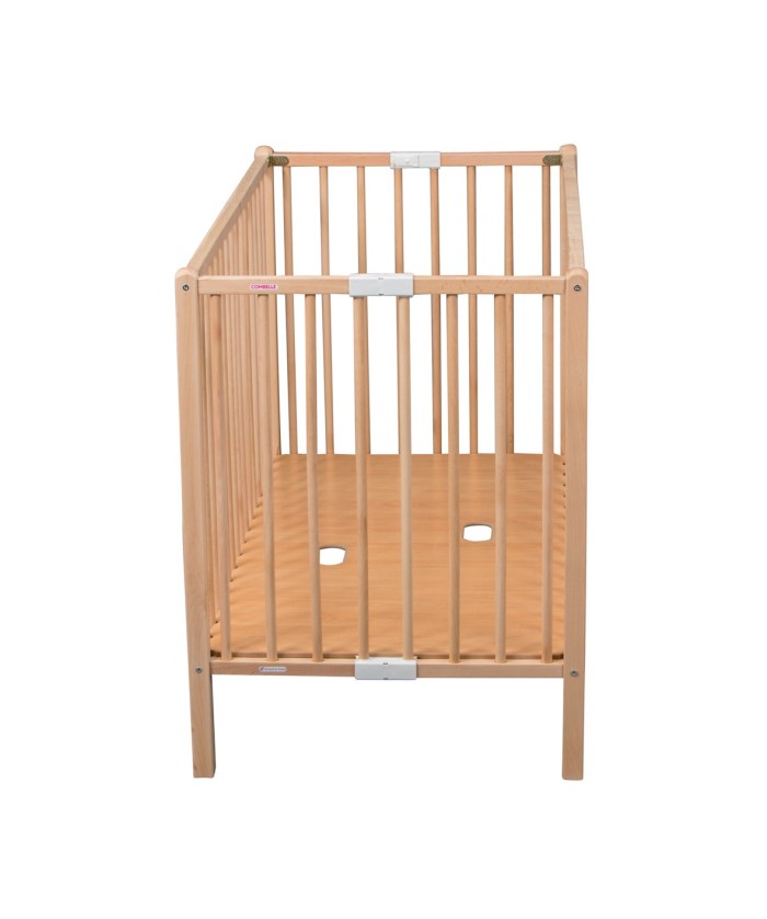 Idéal pour les petits espaces, le lit pliant Roméo de Combelle est réglable sur 3 positions pour s'adapter à l'évolution de bébé. Il accompagnera bébé jusqu’à l’âge de 4 ans. Le lit pour bébé Roméo est disponible en une seule et unique taille 60 x 120 cm. Cependant, le lit est disponible dans de nombreux coloris différents afin de s’accorder avec la décoration de la chambre de bébé. Fabriqué artisanalement en France et conçu en bois d’hêtre massif, ce lit se rangera facilement lors de vos déplacements. Les parties du lit en hêtre massif sont garanties 30 ans tandis que les autres parties sont garanties 2 ans. Il possède un sommier à lattes galbées réglable sur 3 positions de hauteur différentes afin de s’adapter à la croissance de bébé. Cela permet aussi d’éviter que papa et maman se fassent mal au dos lorsqu’ils déposent leur bébé au fond de son lit. Le lit peut aussi être associé à des roulettes, en option, afin de pouvoir être déplacé partout dans la maison.