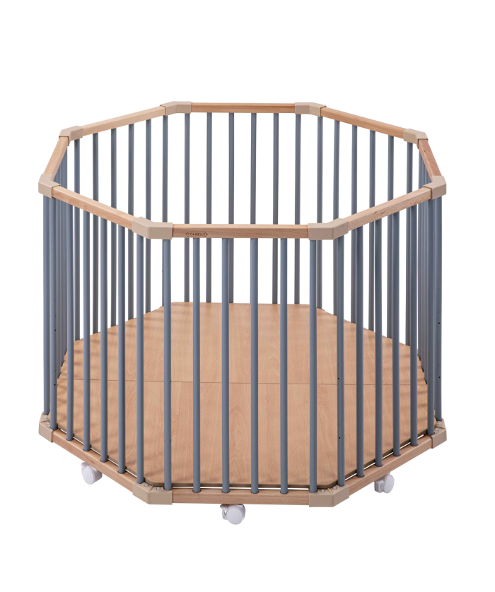Le parc octogonal Basile possède un plancher réglable sur 3 hauteurs. Ainsi bébé pourra utiliser son parc dès la naissance et jusqu'à ses 3 ans (ou maximum 15kg)