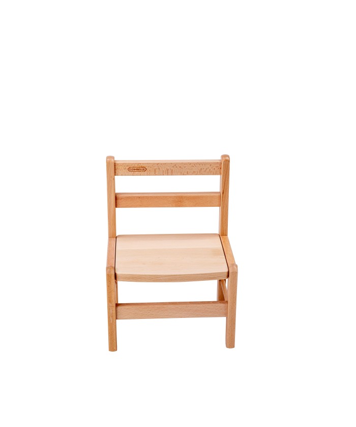 CARACTÉRISTIQUES : Chaise pour enfants de 10 mois à 5 ans. Dimensions : 27 cm x 33 cm, hauteur 46 cm. Essence hêtre massif. Assise : bois massif. Finition : vernis naturel ou laquée. Charge maximale admissible sur la chaise : 20 kg.