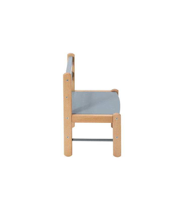 CARACTÉRISTIQUES : Chaise pour enfants de 10 mois à 5 ans. Dimensions : 27 cm x 33 cm, hauteur 46 cm. Essence hêtre massif. Assise : bois massif. Finition : vernis naturel ou laquée. Charge maximale admissible sur la chaise : 20 kg.
