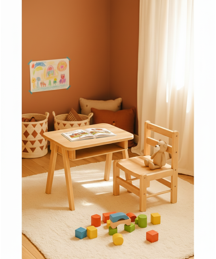 La chaise basse de Combelle est idéale pour que votre enfant s’assied comme les grands. Accompagnée de la table assortie, votre enfant pourra dessiner, s'amuser et prendre le goûter comme les plus grands !