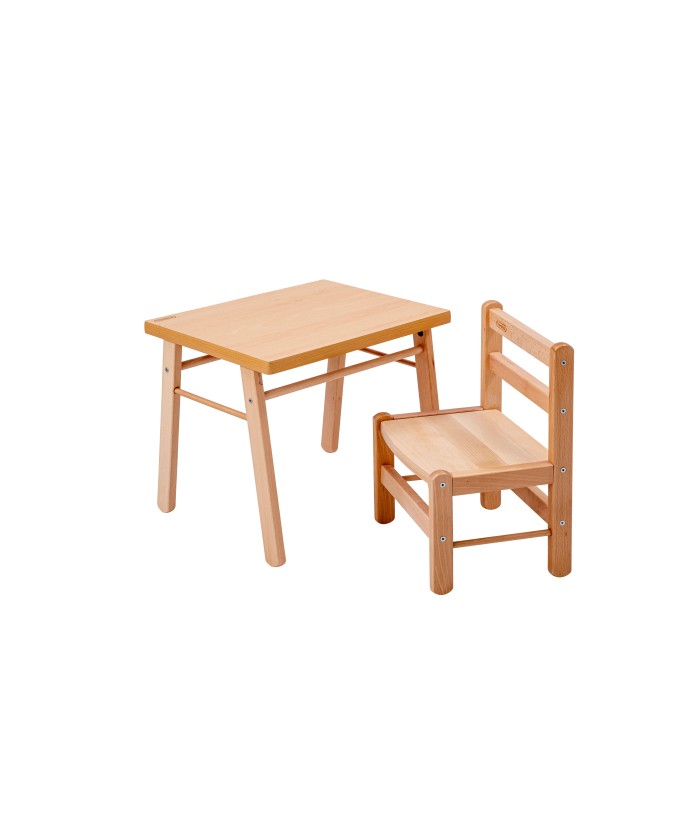 CARACTÉRISTIQUES : Chaise pour enfants de 10 mois à 5 ans. Dimensions : 27 cm x 33 cm, hauteur 46 cm. Essence hêtre massif. Assise : bois massif. Finition : vernis naturel ou laquée. Charge maximale admissible sur la chaise : 20 kg.