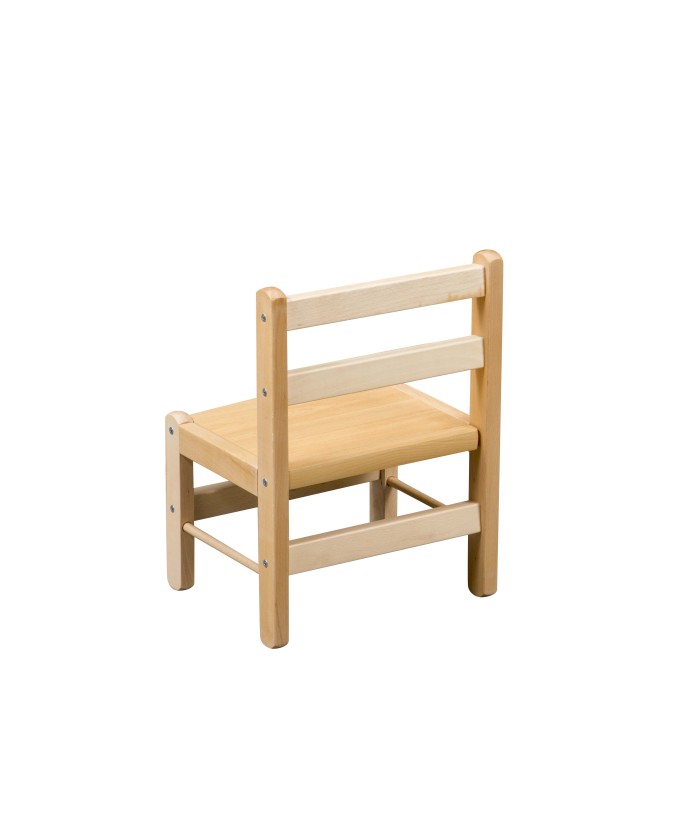 CARACTÉRISTIQUES : Chaise pour enfants de 10 mois à 5 ans. Dimensions : 27 cm x 33 cm, hauteur 46 cm. Essence hêtre massif. Assise : médium imprimé qualité E1. Finition : vernis naturel. Charge maximale admissible sur la chaise : 20 kg.