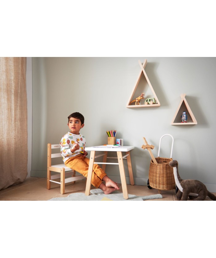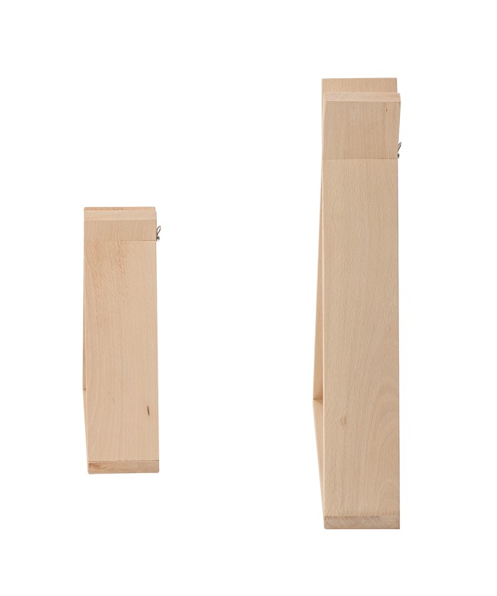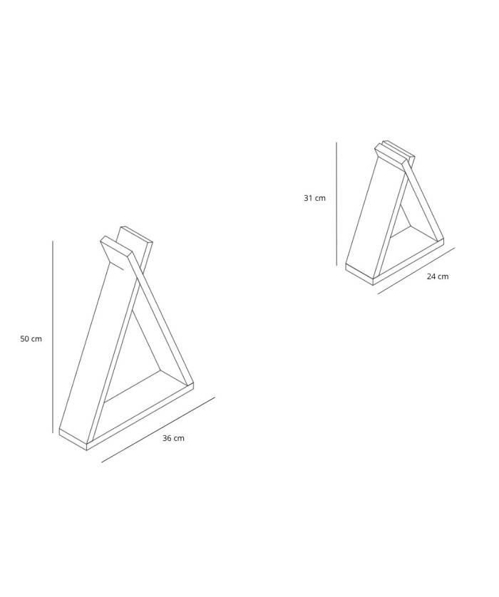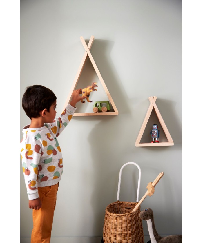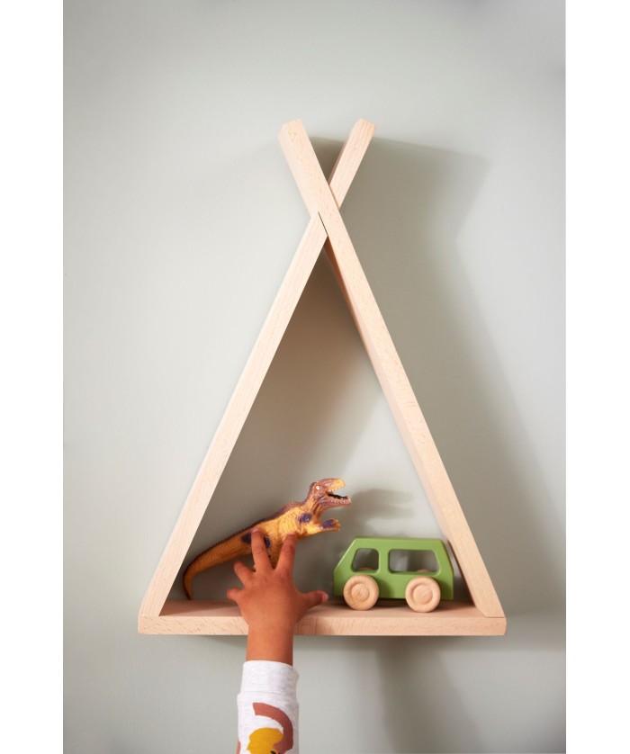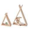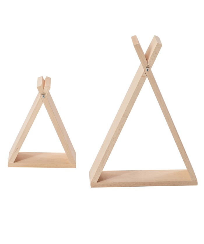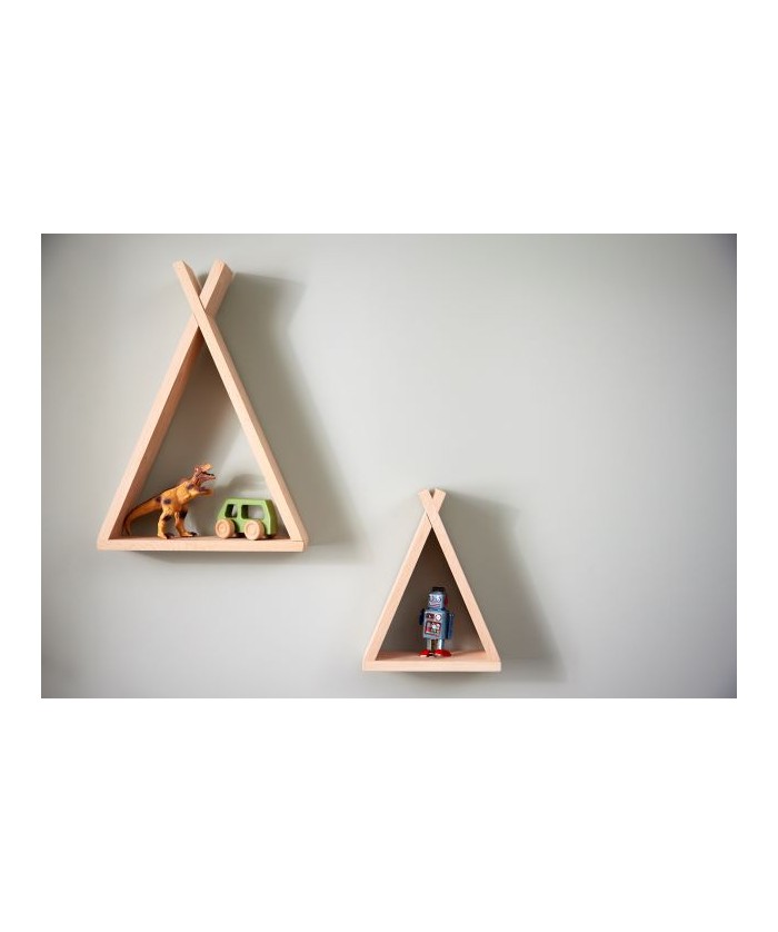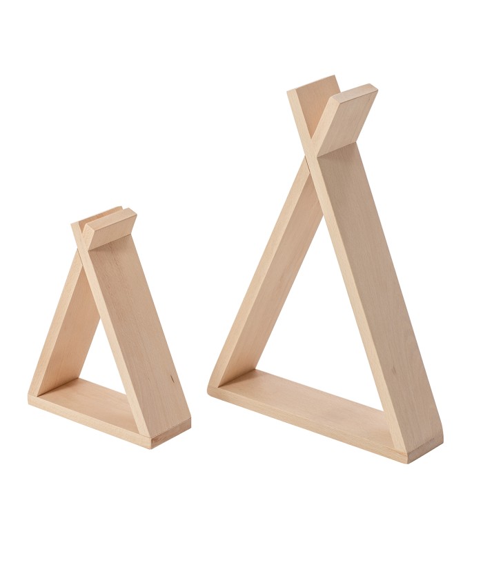 Découvrez nos 2 étagères en hêtre massif en forme de Tipi. De dimensions 24 cm x 31 cm (L x H) et 36 cm x 50 cm (L x H).