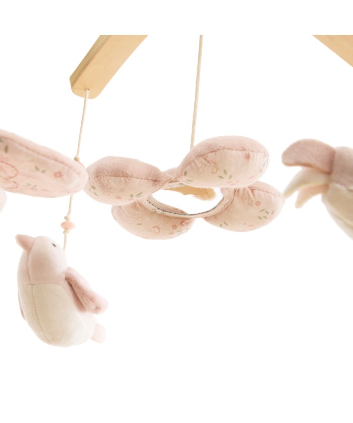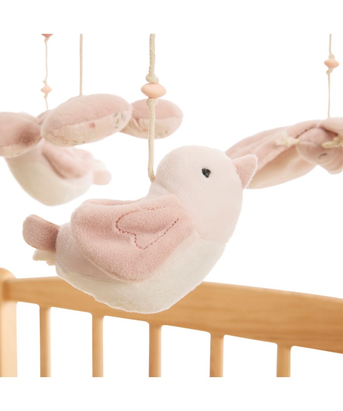 Mobile avec boîte à musique et jouets suspendus de la collection Promenade Bucolique rose.