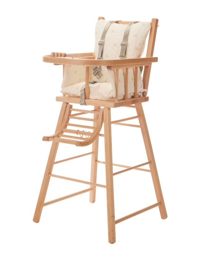 Le dossier de la chaise haute traditionnelle André  est fabriqué avec des barreaux en bois de hêtre massif, très solides et d’une excellente qualité. Pour les moments conviviaux de repas en famille autour de la table, la chaise haute André pour bébé est dotée d’un harnais de sécurité 5 points qui assure à bébé de manger toujours confortablement et en sécurité.