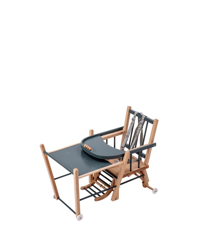 Grâce à sa modularité, la chaise pour bébé Marcel peut se transformer en un chariot en position basse. Bébé s’y sentira très à l'aise et pourra s’amuser en toute sécurité.