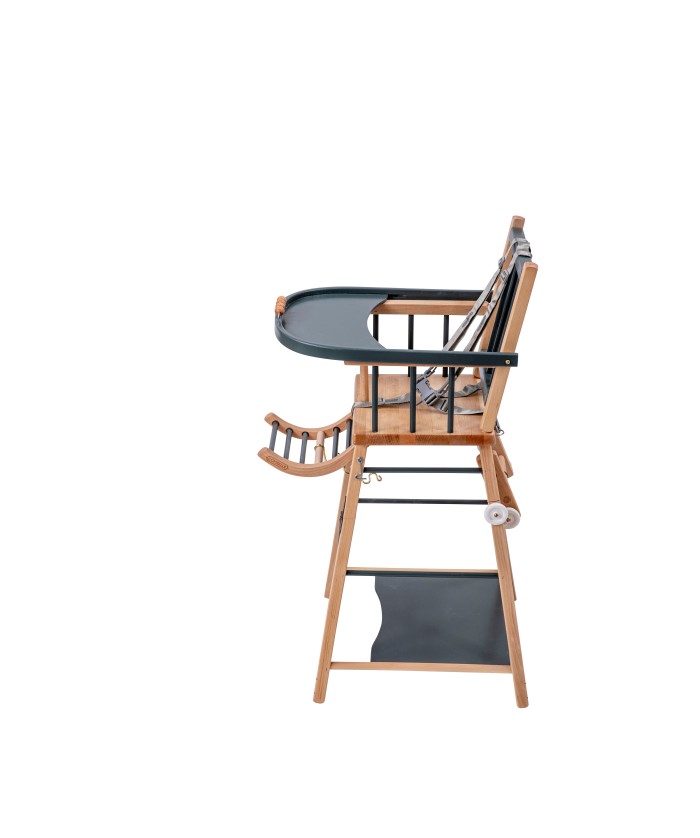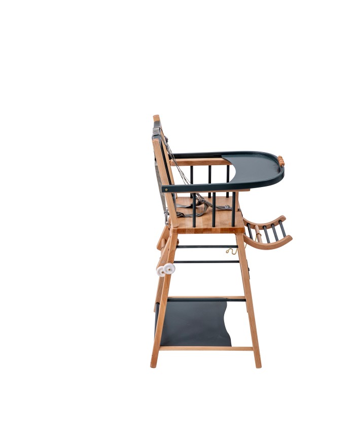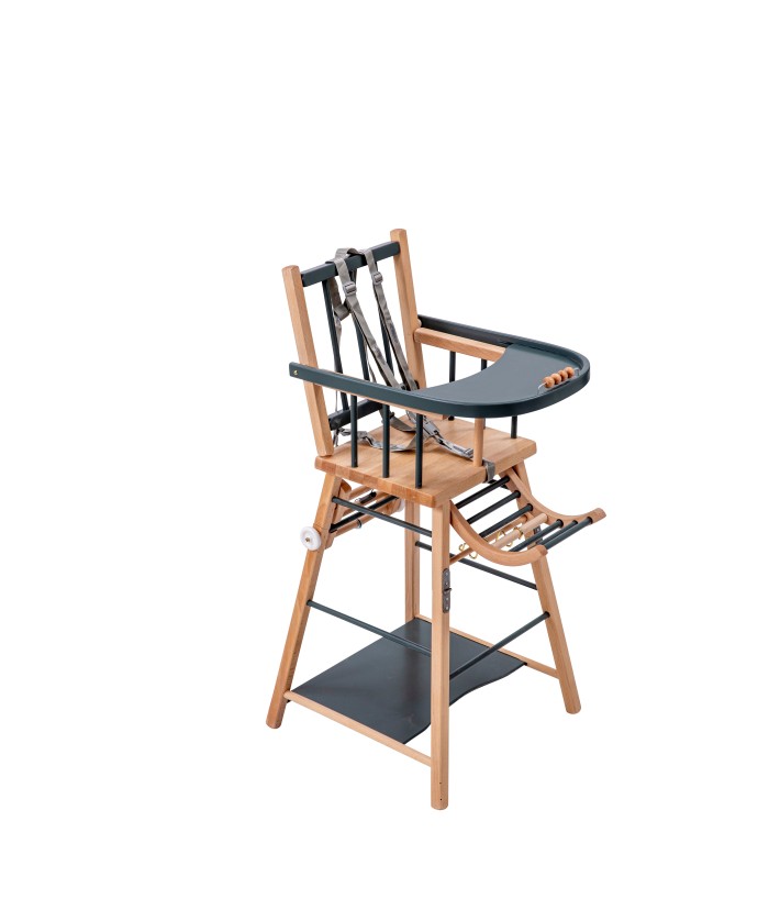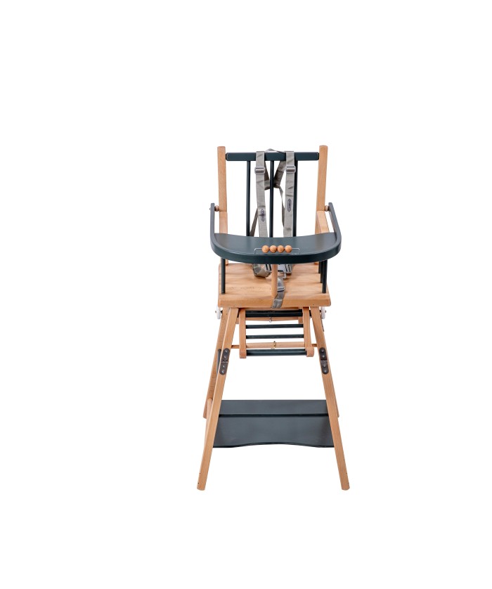 Transformable en petit bureau, dossier à barreaux, harnais de sécurité fourni, repose-pieds réglable