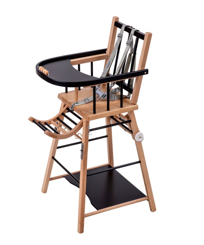 - Transformable en petit bureau, dossier à barreaux, harnais de sécurité fourni, repose-pieds réglable