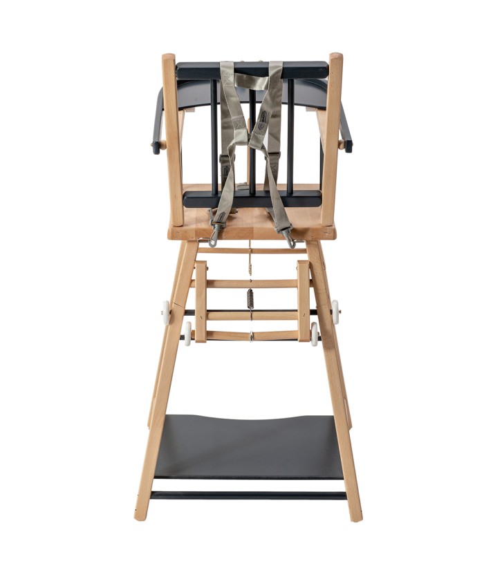 Transformable en petit bureau, dossier à barreaux, harnais de sécurité fourni, repose-pieds réglable