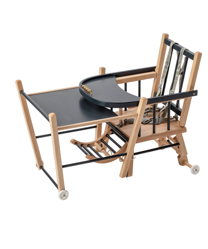 Grâce à sa modularité, la chaise pour bébé Marcel peut se transformer en un chariot en position basse. Bébé s’y sentira très à l'aise et pourra s’amuser en toute sécurité.