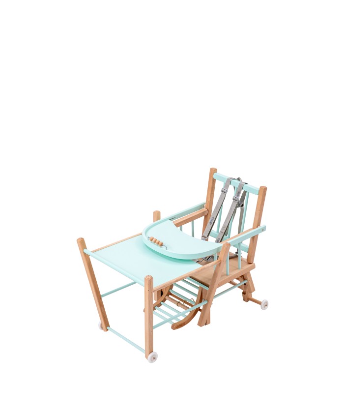 Grâce à sa modularité, la chaise pour bébé Marcel peut se transformer en un chariot en position basse. Bébé s’y sentira très à l'aise et pourra s’amuser en toute sécurité.