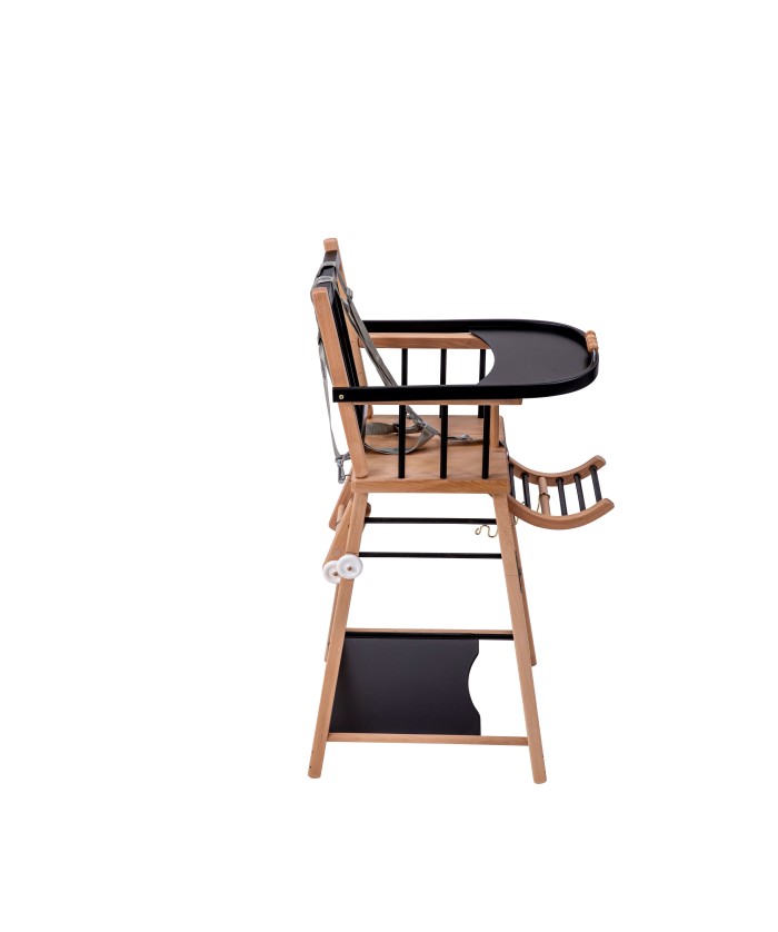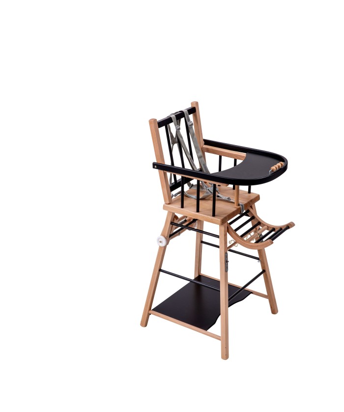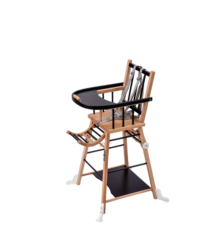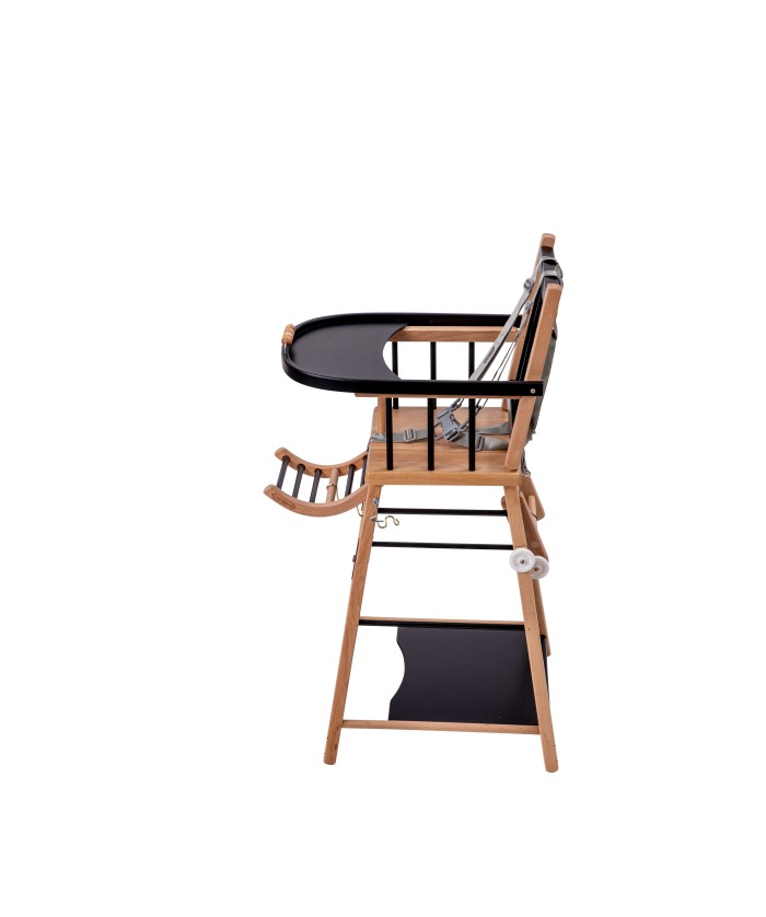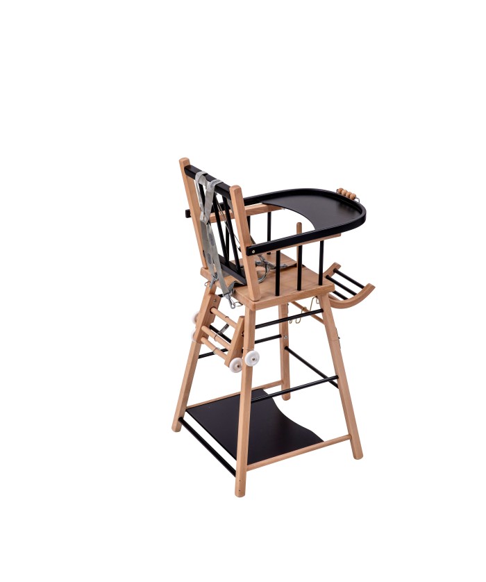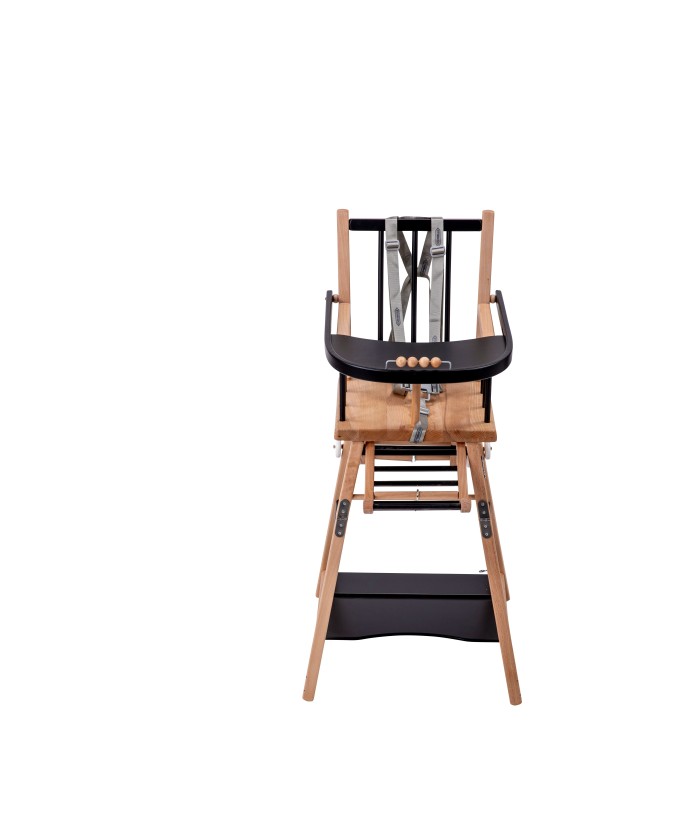 Transformable en petit bureau, dossier à barreaux, harnais de sécurité fourni, repose-pieds réglable