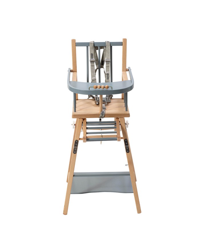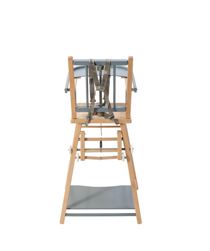 Transformable en petit bureau, dossier à barreaux, harnais de sécurité fourni, repose-pieds réglable
