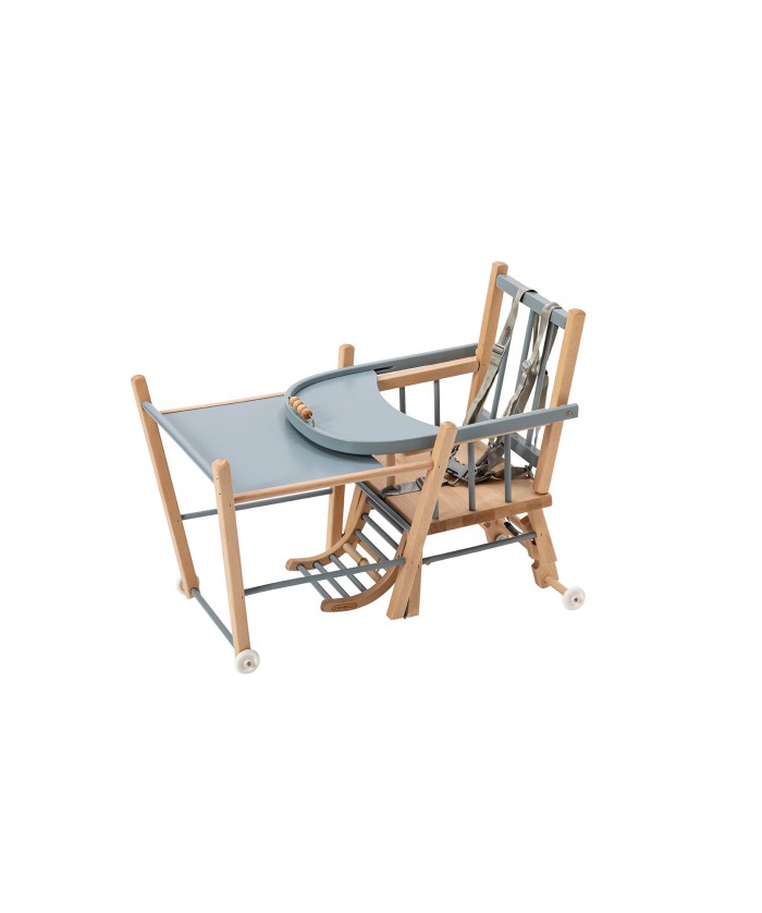 Grâce à sa modularité, la chaise pour bébé Marcel peut se transformer en un chariot en position basse. Bébé s’y sentira très à l'aise et pourra s’amuser en toute sécurité.