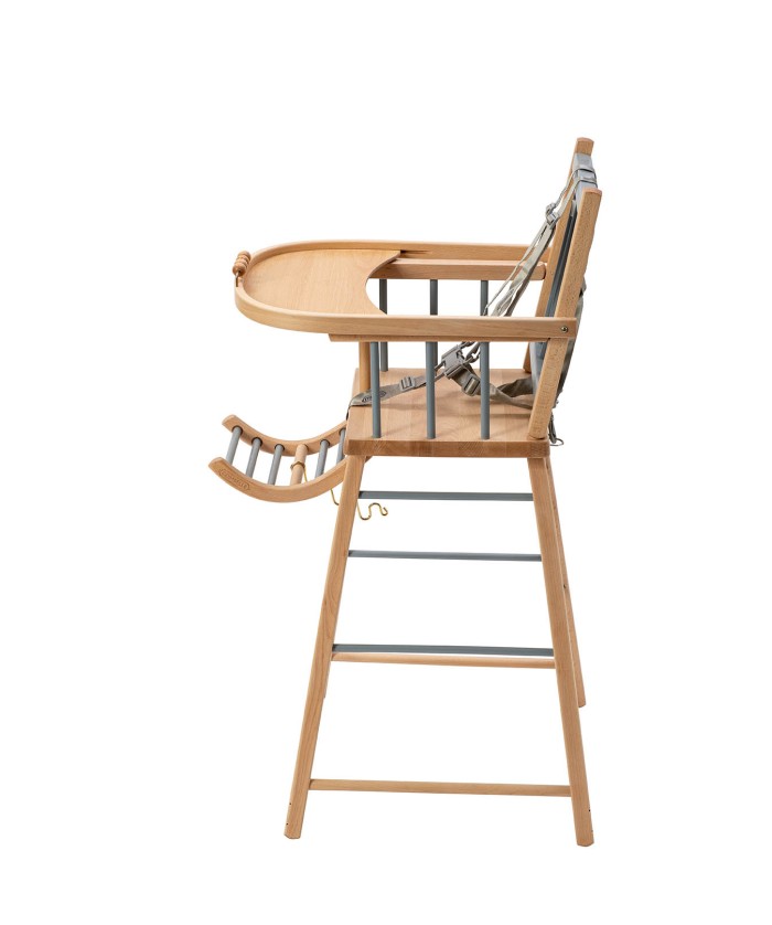 Le dossier de la chaise haute traditionnelle André  est fabriqué avec des barreaux en bois de hêtre massif, très solides et d’une excellente qualité. Pour les moments conviviaux de repas en famille autour de la table, la chaise haute André pour bébé est dotée d’un harnais de sécurité 5 points qui assure à bébé de manger toujours confortablement et en sécurité.