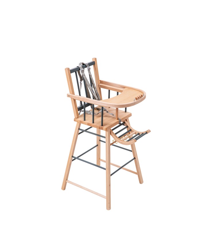 Le dossier de la chaise haute traditionnelle André  est fabriqué avec des barreaux en bois de hêtre massif, très solides et d’une excellente qualité. Pour les moments conviviaux de repas en famille autour de la table, la chaise haute André pour bébé est dotée d’un harnais de sécurité 5 points qui assure à bébé de manger toujours confortablement et en sécurité.