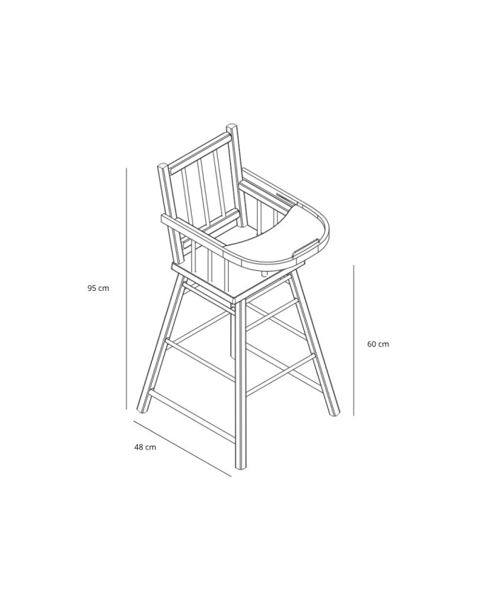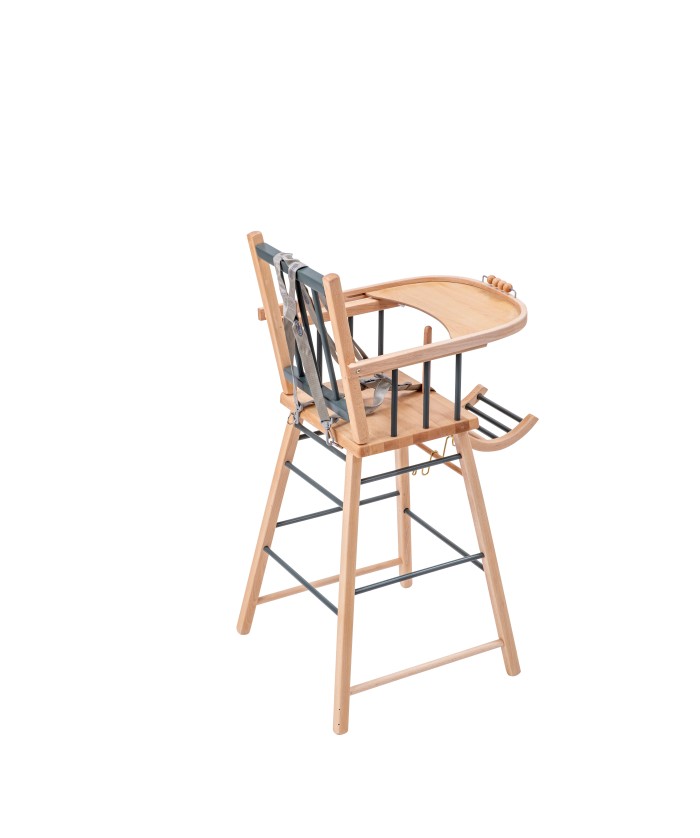 Le dossier de la chaise haute traditionnelle André  est fabriqué avec des barreaux en bois de hêtre massif, très solides et d’une excellente qualité. Pour les moments conviviaux de repas en famille autour de la table, la chaise haute André pour bébé est dotée d’un harnais de sécurité 5 points qui assure à bébé de manger toujours confortablement et en sécurité.
