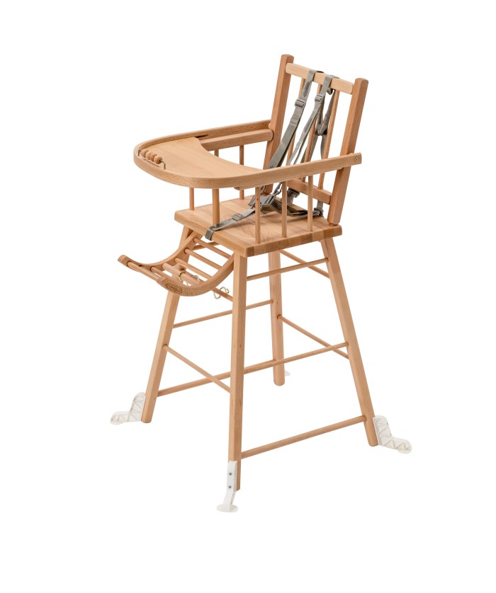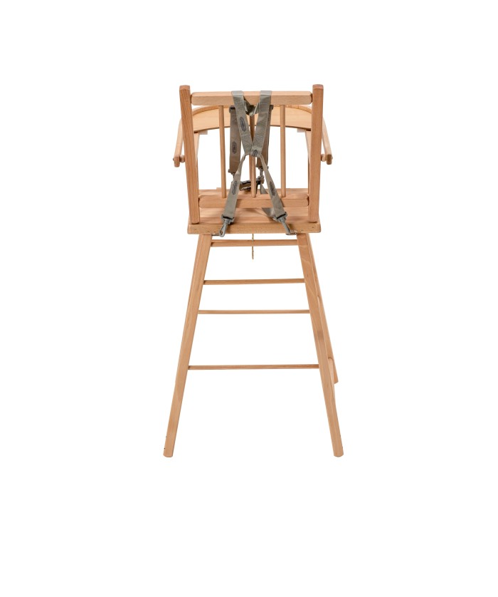 Le dossier de la chaise haute traditionnelle André  est fabriqué avec des barreaux en bois de hêtre massif, très solides et d’une excellente qualité. Pour les moments conviviaux de repas en famille autour de la table, la chaise haute André pour bébé est dotée d’un harnais de sécurité 5 points qui assure à bébé de manger toujours confortablement et en sécurité.
