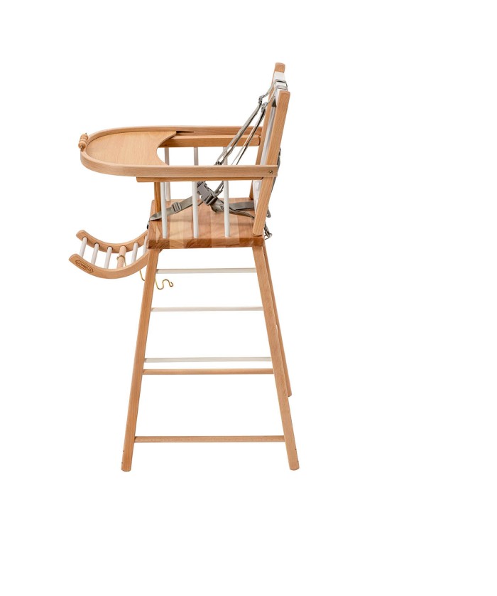 Le dossier de la chaise haute traditionnelle André  est fabriqué avec des barreaux en bois de hêtre massif, très solides et d’une excellente qualité. Pour les moments conviviaux de repas en famille autour de la table, la chaise haute André pour bébé est dotée d’un harnais de sécurité 5 points qui assure à bébé de manger toujours confortablement et en sécurité.