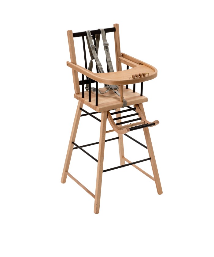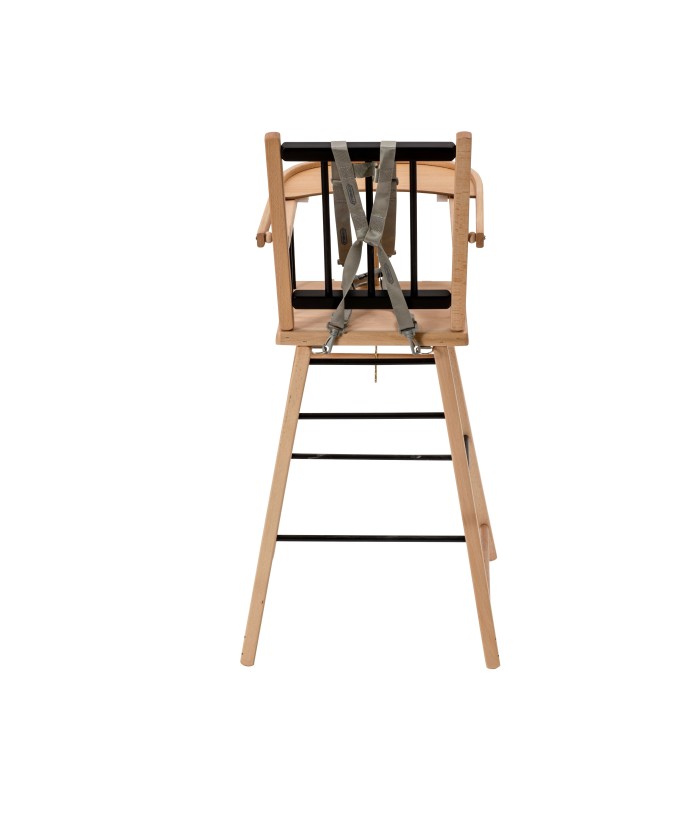 Le dossier de la chaise haute traditionnelle André  est fabriqué avec des barreaux en bois de hêtre massif, très solides et d’une excellente qualité. Pour les moments conviviaux de repas en famille autour de la table, la chaise haute André pour bébé est dotée d’un harnais de sécurité 5 points qui assure à bébé de manger toujours confortablement et en sécurité.