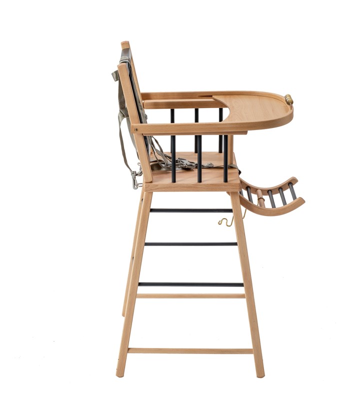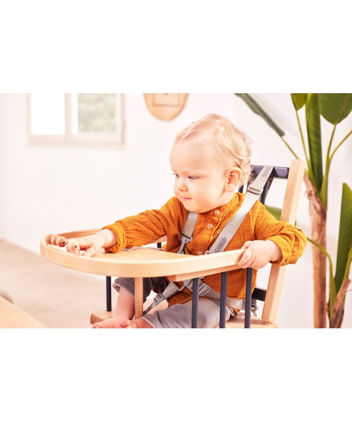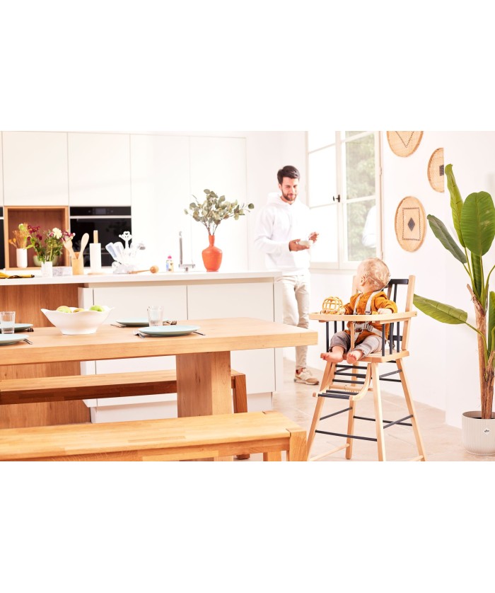 Le dossier de la chaise haute traditionnelle André  est fabriqué avec des barreaux en bois de hêtre massif, très solides et d’une excellente qualité. Pour les moments conviviaux de repas en famille autour de la table, la chaise haute André pour bébé est dotée d’un harnais de sécurité 5 points qui assure à bébé de manger toujours confortablement et en sécurité.