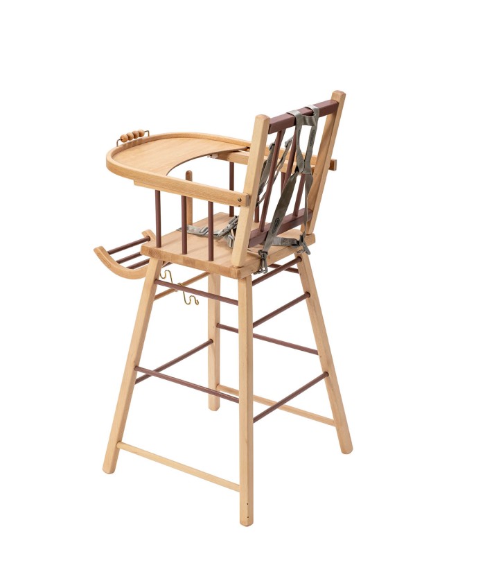Le dossier de la chaise haute traditionnelle André  est fabriqué avec des barreaux en bois de hêtre massif, très solides et d’une excellente qualité. Pour les moments conviviaux de repas en famille autour de la table, la chaise haute André pour bébé est dotée d’un harnais de sécurité 5 points qui assure à bébé de manger toujours confortablement et en sécurité.