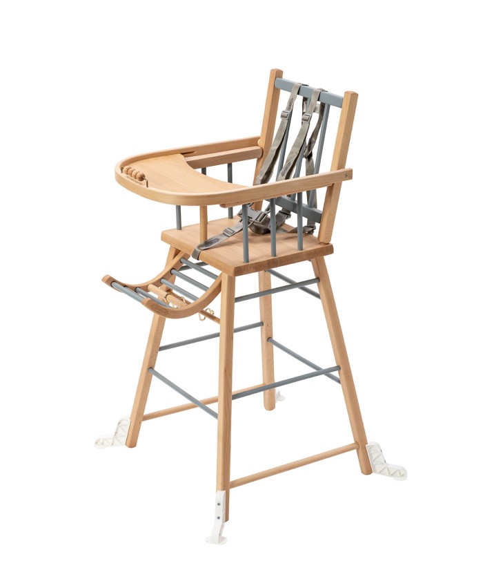 Le dossier de la chaise haute traditionnelle André  est fabriqué avec des barreaux en bois de hêtre massif, très solides et d’une excellente qualité. Pour les moments conviviaux de repas en famille autour de la table, la chaise haute André pour bébé est dotée d’un harnais de sécurité 5 points qui assure à bébé de manger toujours confortablement et en sécurité.