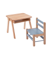 CARACTÉRISTIQUES : Bureau. Essence : hêtre massif, Finition : vernis naturel. Plateau : Hêtre massif. Dimensions : 49 cm x 39 cm, hauteur 42.5 cm. Charge maximale admissible sur le plateau : 30 kg. Chaise : pour enfant de 10 mois à 5 ans. Dimensions 27x33, hauteur 46cm. Essence : Hêtre massif. Charge maximale admissible sur la chaise : 20 kg