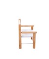 CARACTÉRISTIQUES : Bureau. Essence : hêtre massif, Finition : vernis naturel. Plateau : Hêtre massif. Dimensions : 49 cm x 39 cm, hauteur 42.5 cm. Charge maximale admissible sur le plateau : 30 kg. Fauteuil : pour enfant de 10 mois à 5 ans. Dimensions 27x33, hauteur 46cm. Essence : Hêtre massif. Charge maximale admissible sur le fauteuil : 20 kg