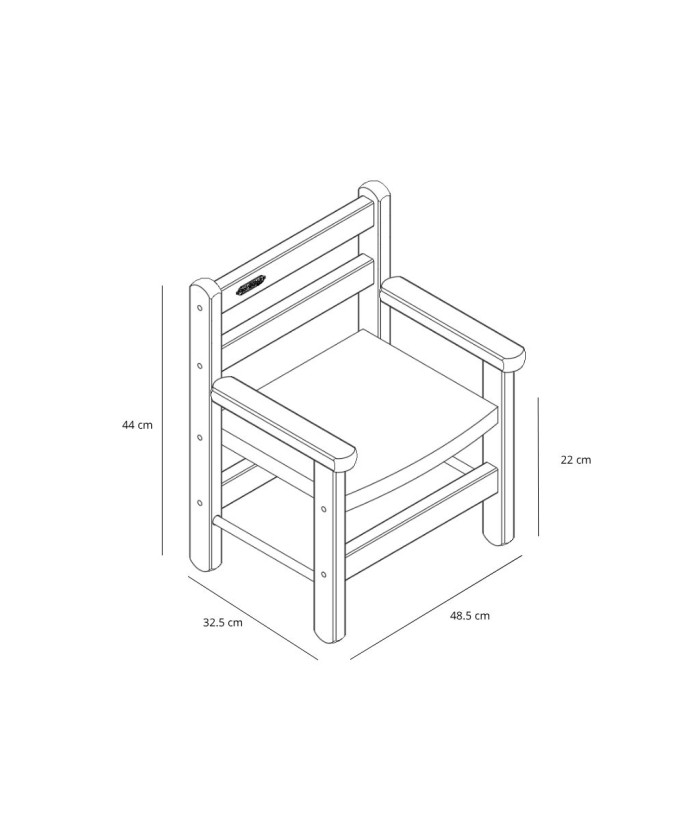 La fauteuil mesure 33 cm de largeur, 27 cm de longueur et 46 cm de hauteur. L’assise est située à 22 cm du sol. Nos experts considèrent que cette hauteur d’assise est parfaite pour bébé.