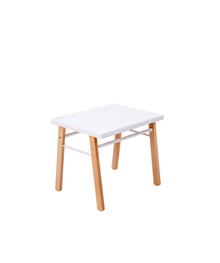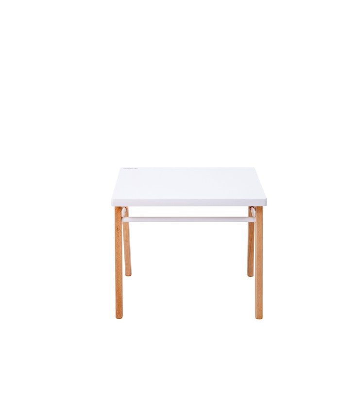 CARACTÉRISTIQUES : Table basse. Essence : hêtre massif, Finition : vernis naturel ou laquée. Plateau : médium imprimé qualité E1. Dimensions : 50 cm x 40 cm, hauteur 43 cm. Charge maximale admissible sur le plateau : 20 kg.