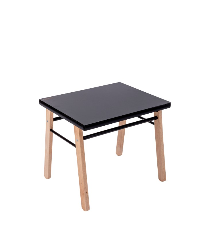 CARACTÉRISTIQUES : Table basse. Essence : hêtre massif, Finition : vernis naturel ou laquée. Plateau : médium imprimé qualité E1. Dimensions : 50 cm x 40 cm, hauteur 43 cm. Charge maximale admissible sur le plateau : 20 kg.