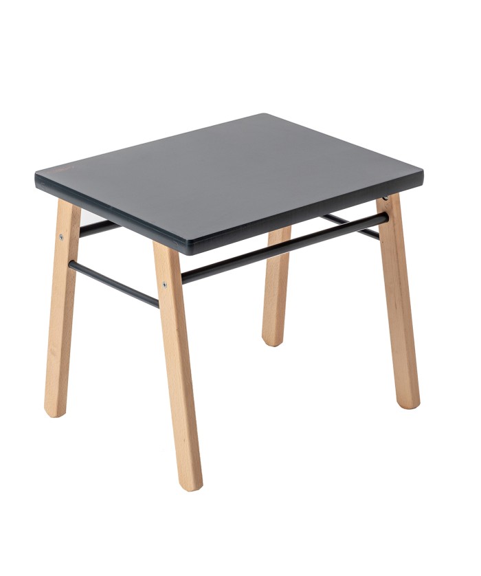 CARACTÉRISTIQUES : Table basse. Essence : hêtre massif, Finition : vernis naturel ou laquée. Plateau : médium imprimé qualité E1. Dimensions : 50 cm x 40 cm, hauteur 43 cm. Charge maximale admissible sur le plateau : 20 kg.