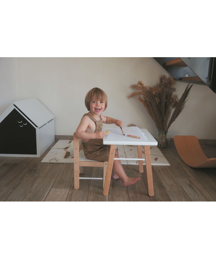 Votre enfant aura toute la place nécessaire pour dessiner, s'amuser ou prendre le goûter sur la table Gabriel et la chaise Louise. Avec leur design sobre et élégant et leurs couleurs naturelles la table Gabriel et la chaise Louise participeront complétement à la décoration de chambre de bébé. Vous pourrez créer un vrai petit coin pour que bébé puisse dessiner ou s’amuser. Mais aussi décorer sa chambre dans des tons modernes.