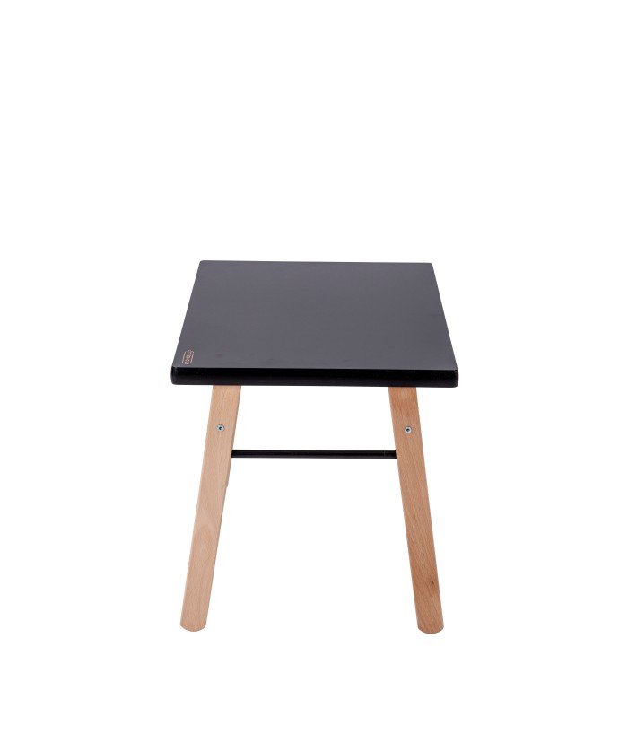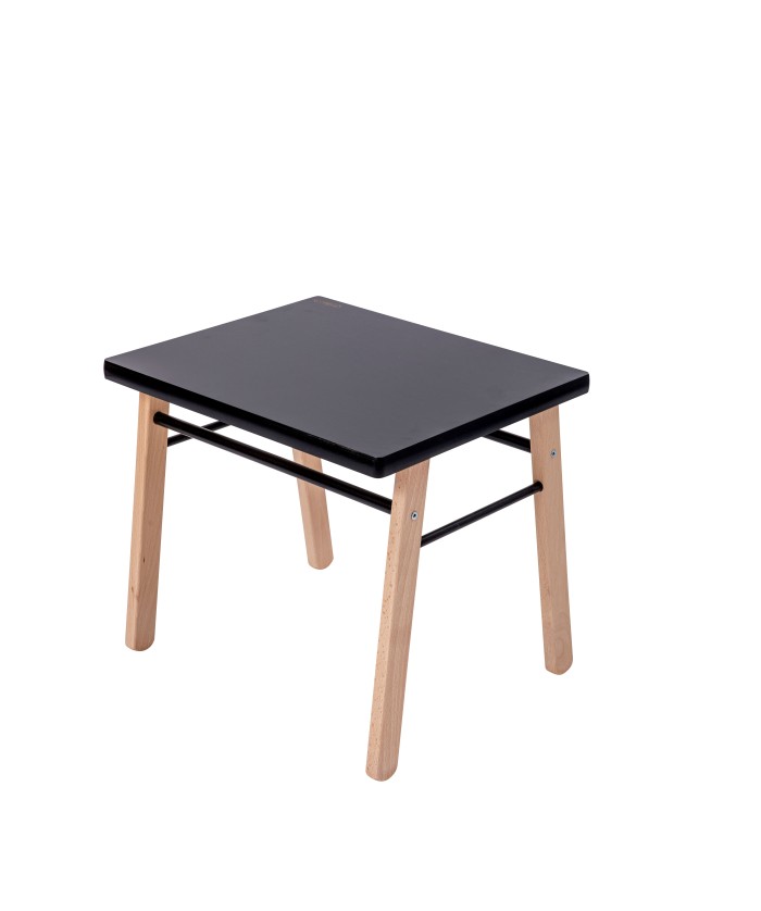 Table basse. Essence : hêtre massif, Finition : vernis naturel ou laquée. Plateau : médium imprimé qualité E1. Dimensions : 50 cm x 40 cm, hauteur 43 cm. Charge maximale admissible sur le plateau : 20 kg.