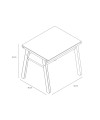 Table basse. Essence : hêtre massif, Finition : vernis naturel ou laquée. Plateau : médium imprimé qualité E1. Dimensions : 50 cm x 40 cm, hauteur 43 cm. Charge maximale admissible sur le plateau : 20 kg.